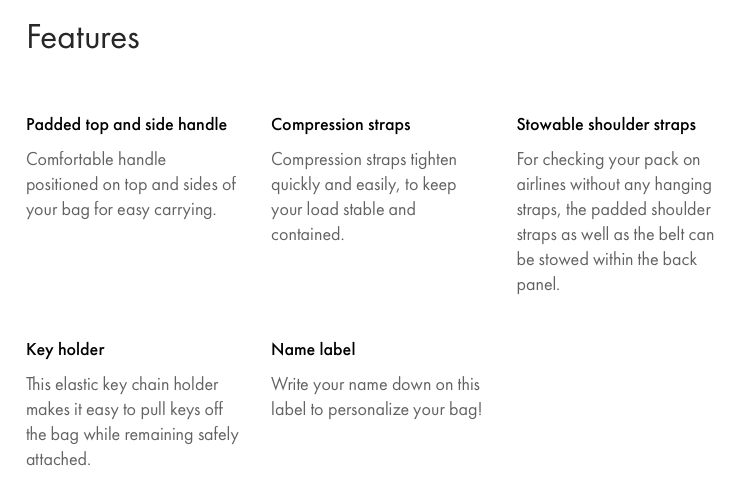 - Handles – There are handles on all sides of the bag, meaning it’s easy to lift and carry, with multiple choices. You can also attach items and clip on a water bottle for example, to these durable seat-belt style handles. They are strong and handy.