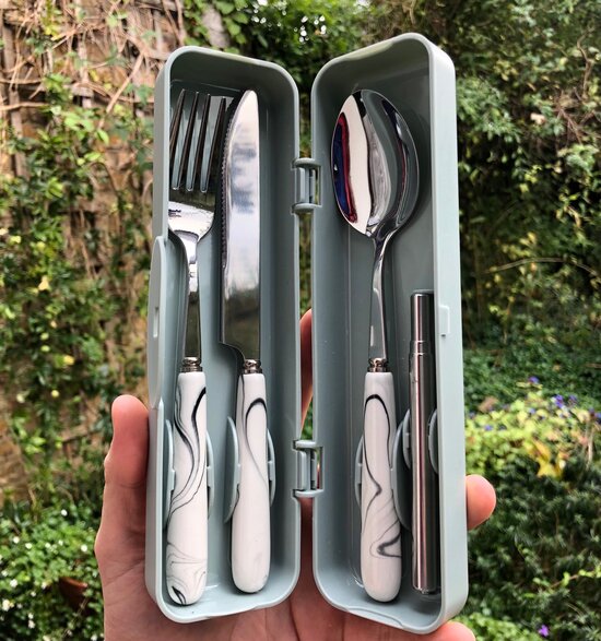 Perfect for work, picnics, camping, etc, these portable sets are fabulous, plus they are dishwasher safe, awesome. I really like the pattern, it’s very smart for a portable set! I have used disposable wooden ones, but they often have a funny taste as they absorb the food. Mnched are stainless steel, plus the set is free of BPA, BPS, and phthalates, plus, the box is made from recycled polypropylene. I really like my set, but the box clip is a little loose. Having said that, I have used my set many times already and even took it to Regent’s Park outdoor theatre, where I had a pre-show picnic. It’s compact, useful and I love the straw which comes with it’s own cleaning brush.